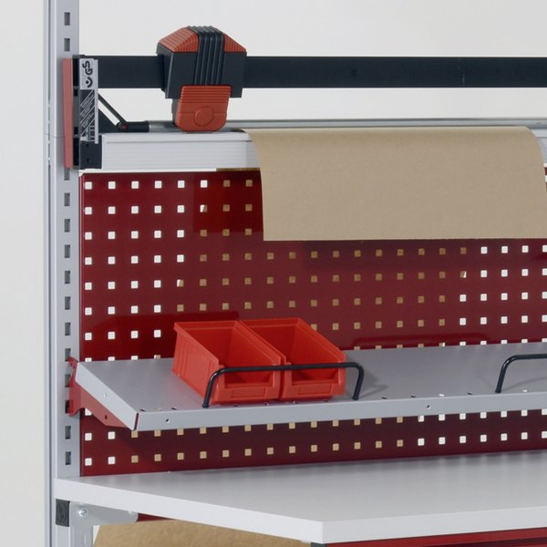 - stirnseitige Rasterlochung und seitliche Nuten für ein schnelles und schraubloses Einhängen von Zubehörkomponenten in variablen Höhen